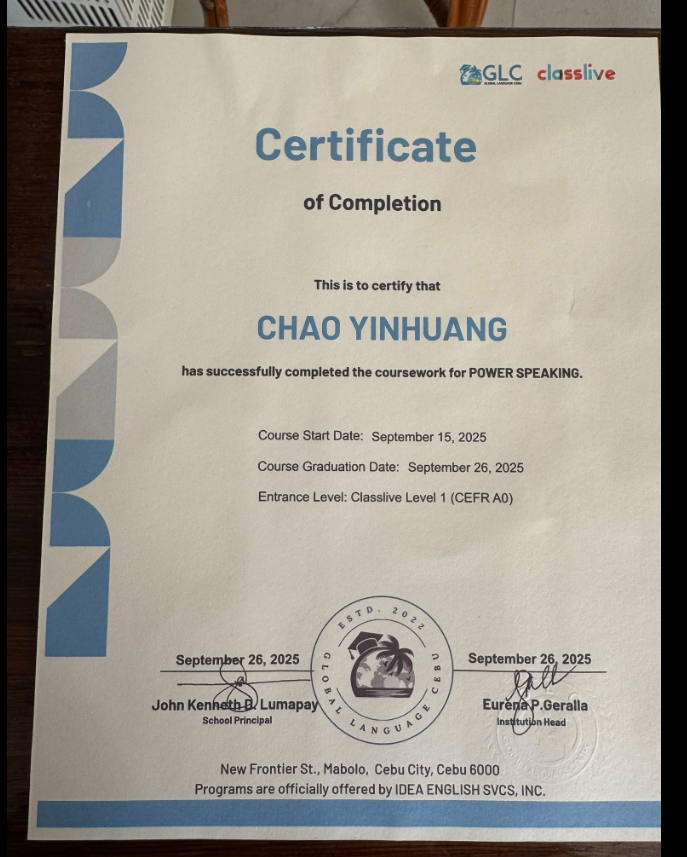 他報名了 金湛遊學 的菲律賓宿霧的兩週英語遊學,